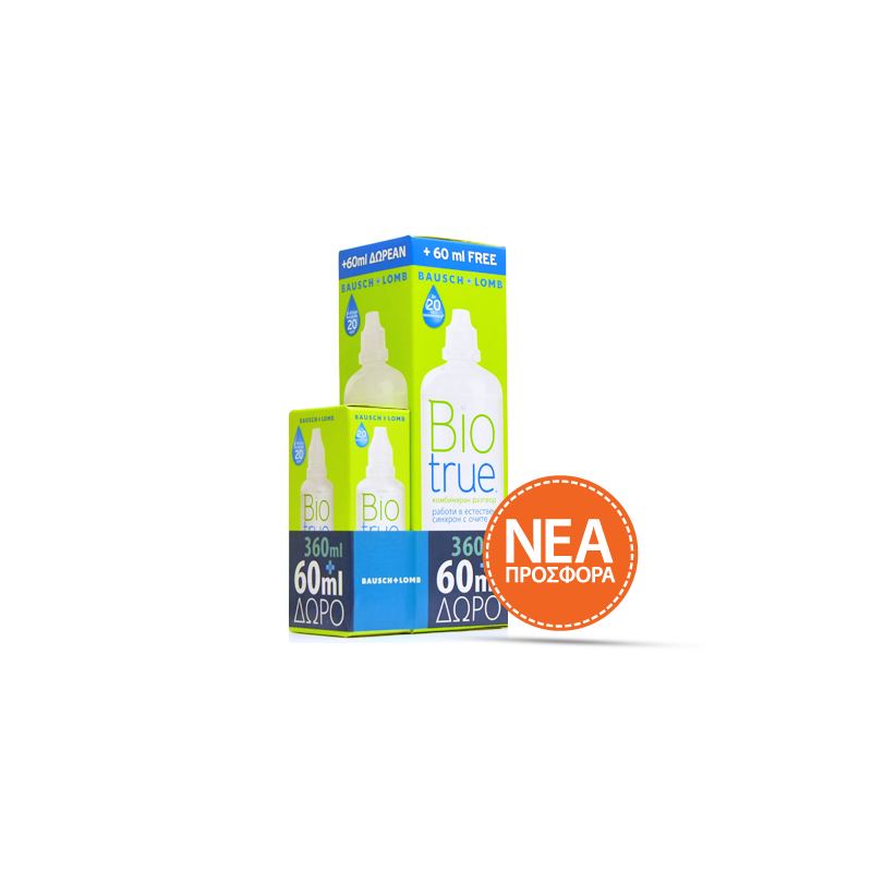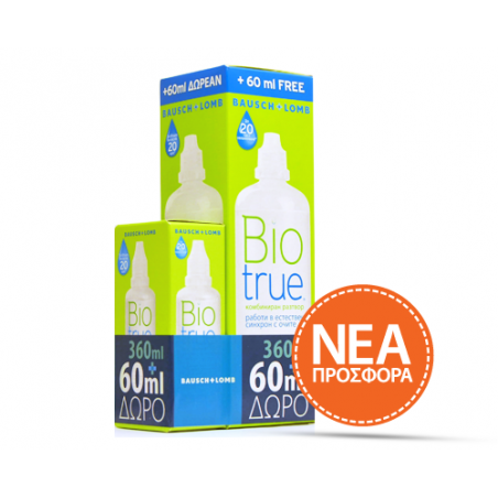 Το Biotrue είναι εμπνευσμένο από τη βιολογία των ματιών σας™. Ξεπερνάει τη συνηθισμένη απολύμανση, με το να αποτελεί διάλυμα που συνδυάζει τρεις βιο-εμπνευσμένες καινοτομίες: 1)Έχει ένα λιπαντικό που συναντάται φυσικά στα μάτια. 2) Έχει pH ίδιο με των υγιών δακρύων 3) Διατηρεί ορισμένες ευεργετικές πρωτεΐνες των δακρύων ενεργές Το Biotrue λειτουργεί σαν τα μάτια για να τους παρέχει υγεία και αξεπέραστη άνεση. Άλλωστε, τα ίδια τα μάτια ξέρουν ποια είναι η φροντίδα που τους αξίζει!
