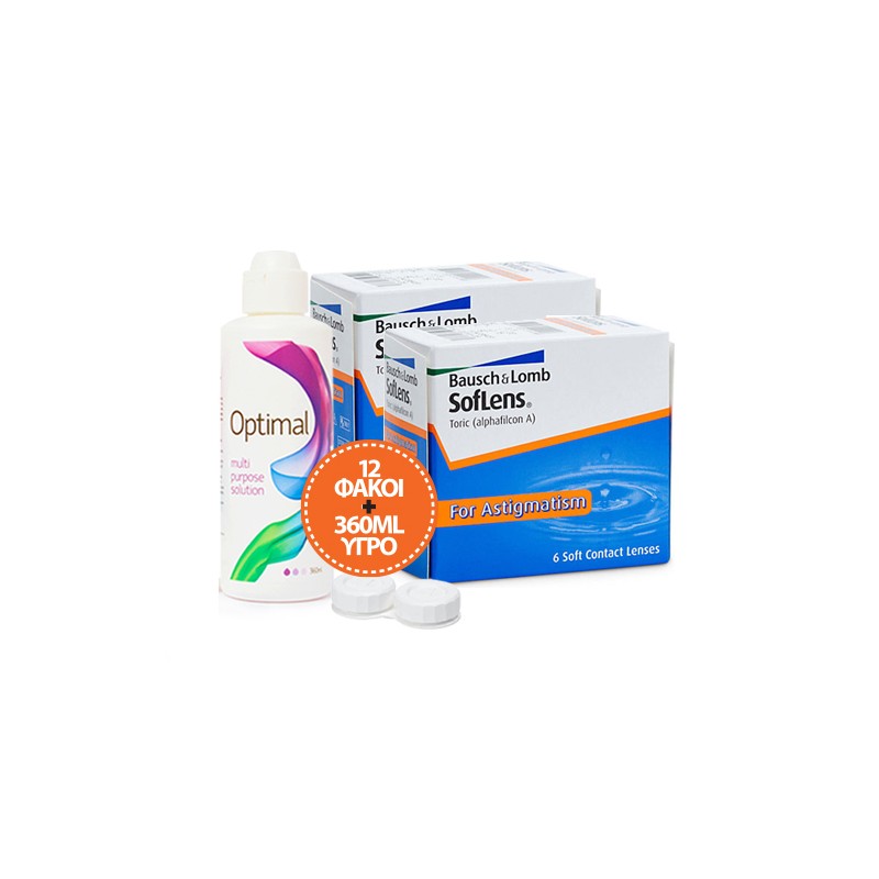 Πακέτο Economy, 2 κουτιών με 6 φακούς το κάθε κουτί. Σύνολο 12 φακοί μαζί με Υγρό Optimal 360ml !! Μόνο 42€/κουτί ή 7€/φακό!