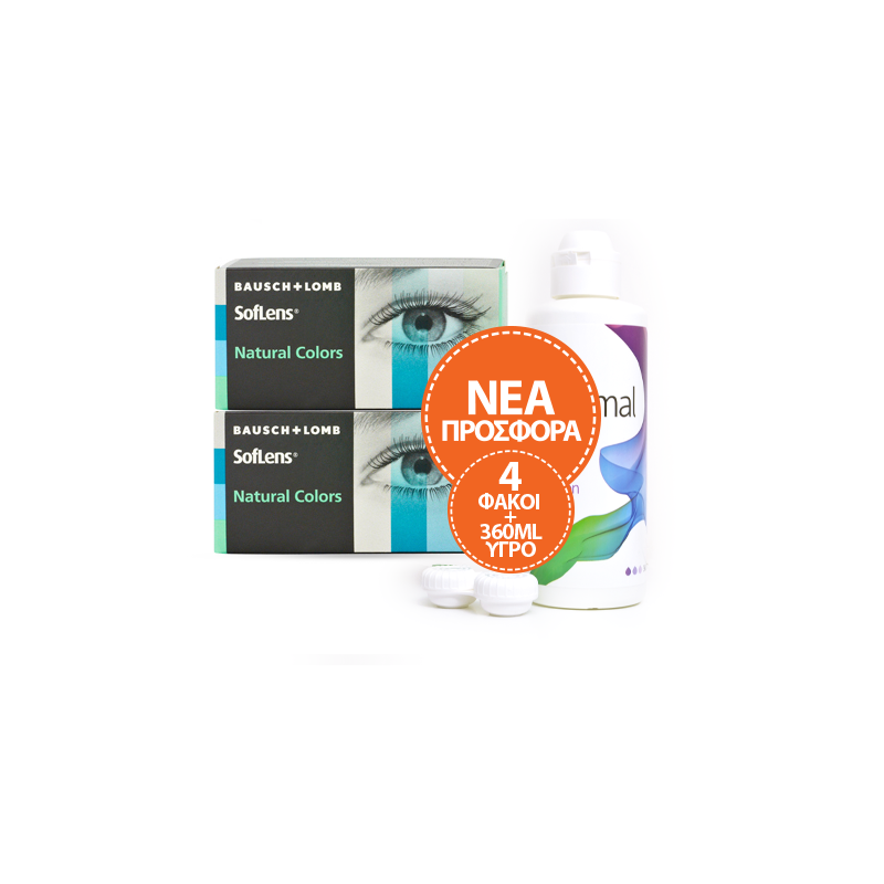 Πακέτο Economy, 2 κουτιών SOFLENS NATURAL COLORS με 2 φακούς το κάθε κουτί (4 φακοί) μαζί με Υγρό Optimal 360ml.