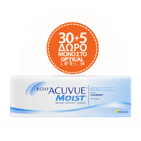 Οι εξαιρετικά άνετοι ημερήσιοι ΑCUVUE 1DAY MOIST τώρα με διόρθωση του αστιγματισμού.