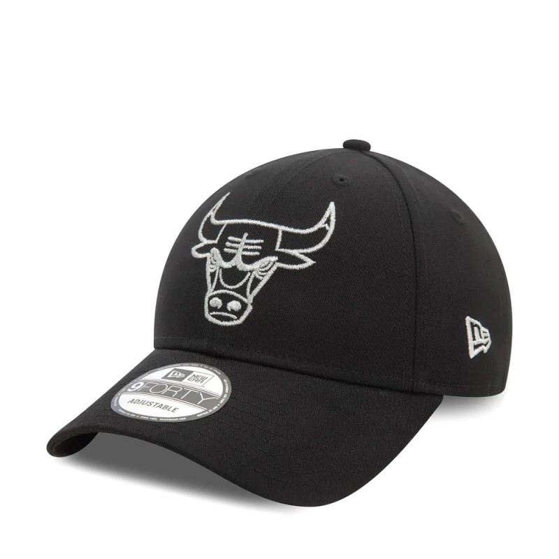 Chicago Bulls Metallic Outline Black 9FORTY Adjustable Cap.