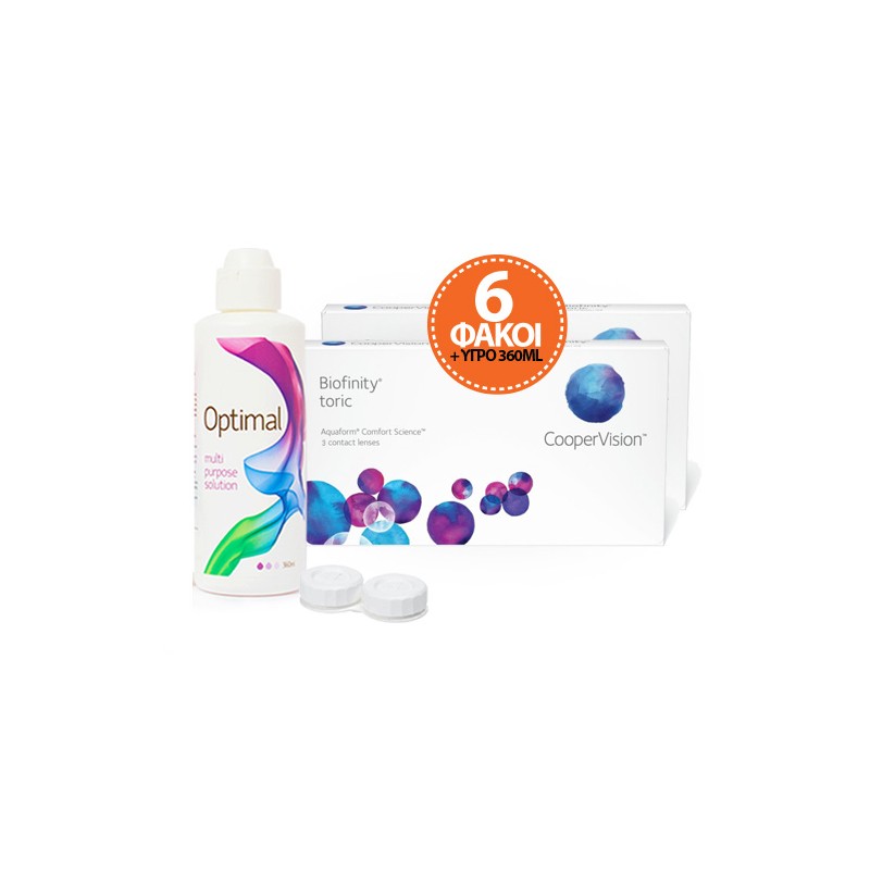 Economy Package, 2 boxes of Biofinity by CooperVision with 3 lenses each. Total of 6 lenses along with Optimal 360 ml liquid!!!